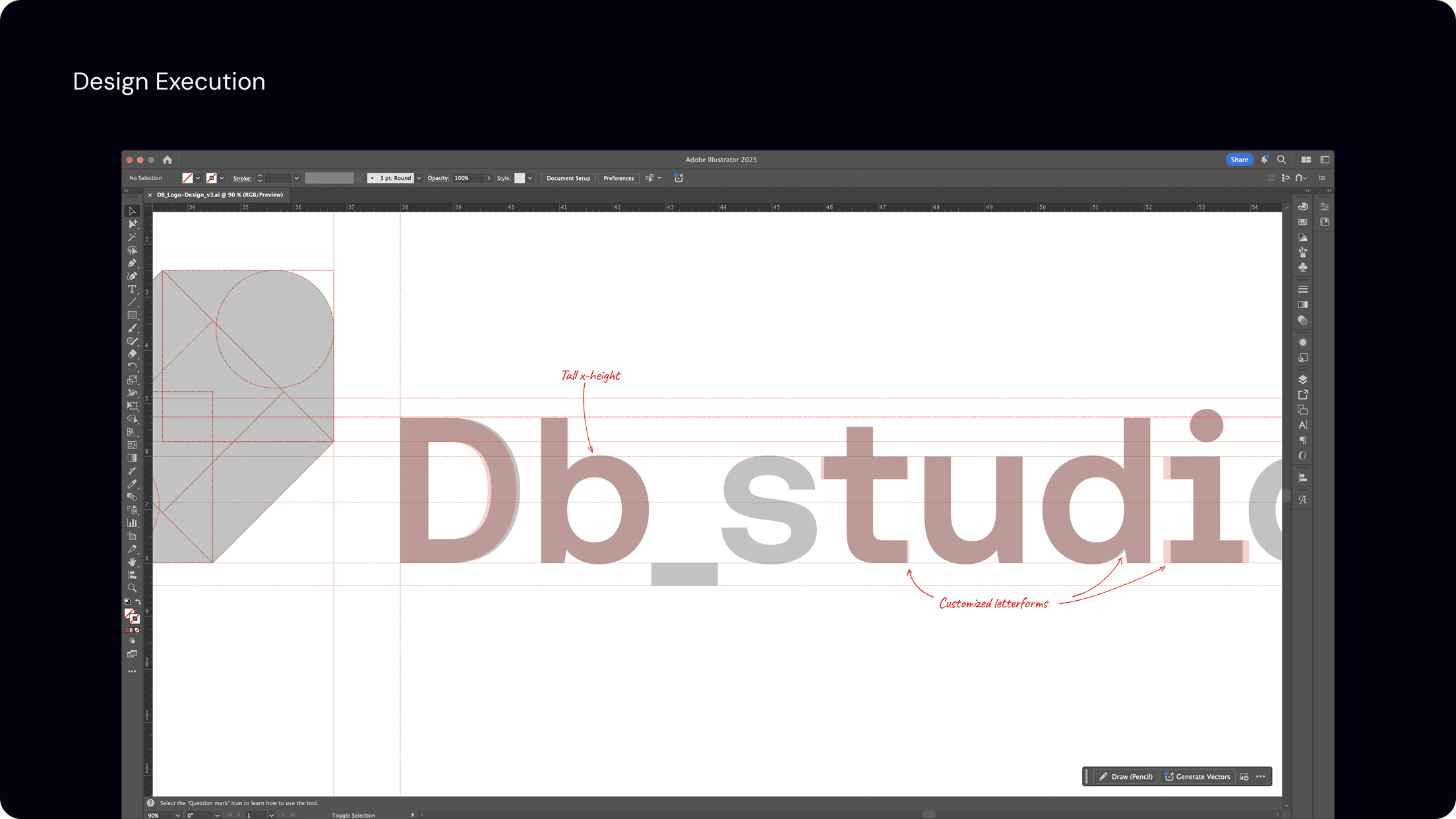 We set out to distinguish our design practice from Devblock’s development work while preserving the shared DNA that connects them. Db_studio needed its own identity—one that embodies human creativity and intelligence in harmony with the parent brand.
