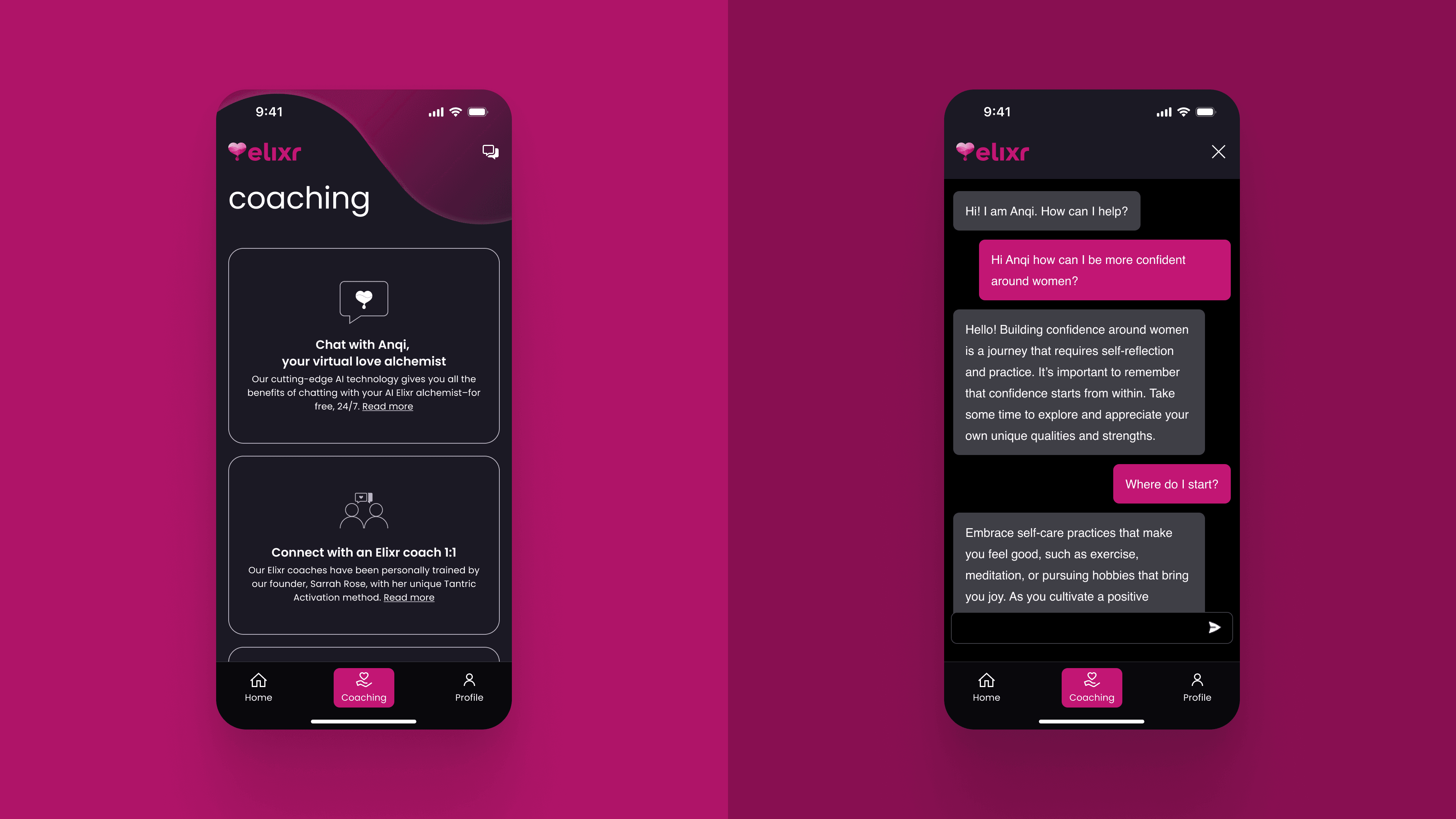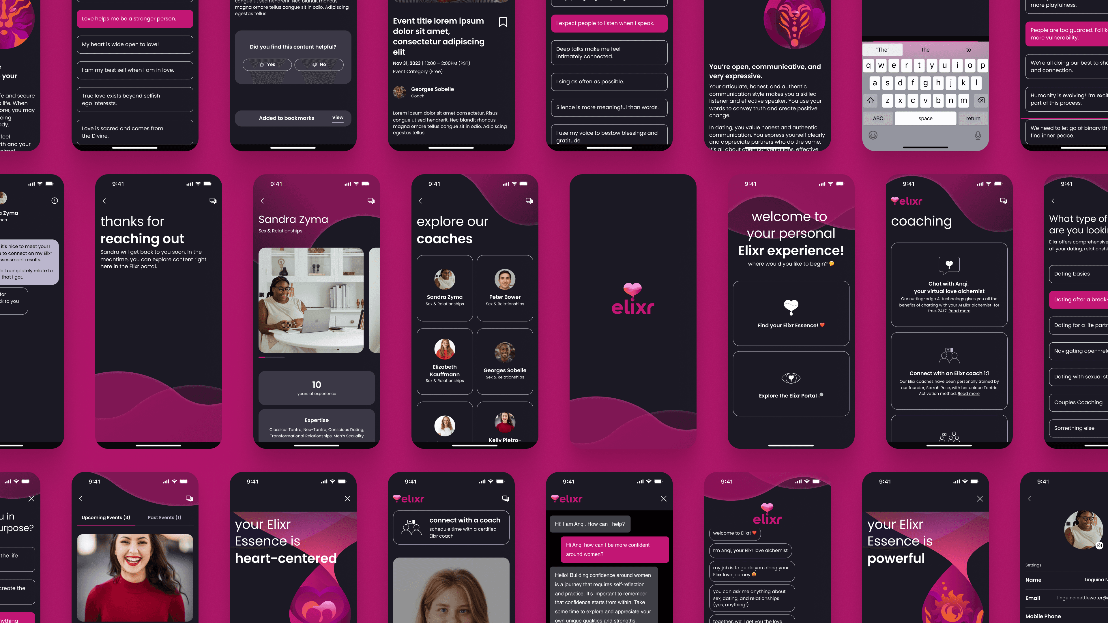 Traditional dating apps often fall short in providing personalized guidance and meaningful support. Users are left navigating the complexities of relationships without tailored advice or professional insights. Elixr sought to bridge this gap by creating a platform that combines human-centric coaching with innovative AI solutions to deliver a personalized and impactful user experience.
